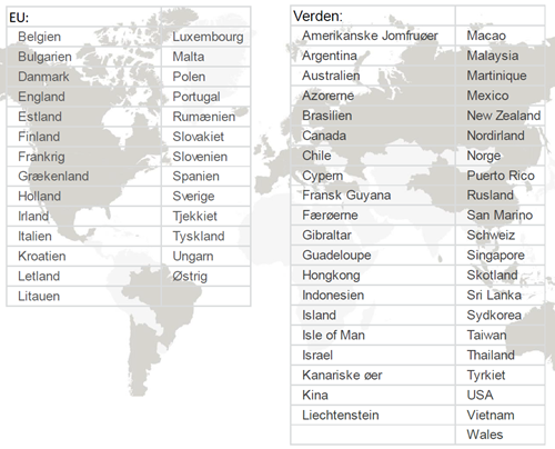 Når du befinder dig i udlandet har du ligeledes fri tale til alle lande